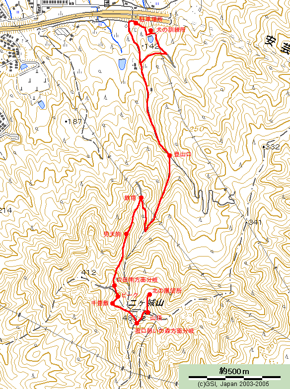 二ヶ城山(ふたつがじょうざん)、483m |
