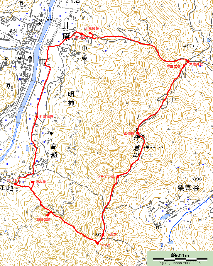 「本城址は神之倉山山系の北西にのびる