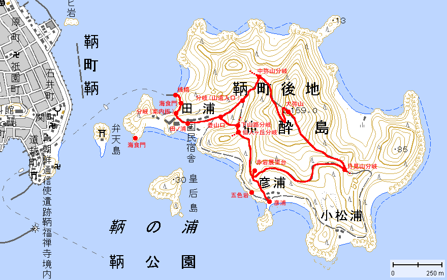 彦浦に下りる分岐のすぐ上に赤岩展望台。
