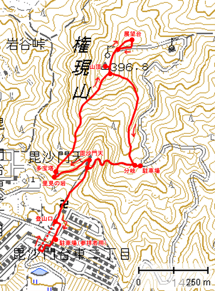 毘沙門天から西尾根を並行に巻いて行くと