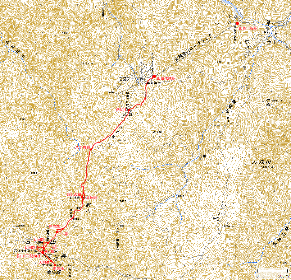 表参道を中心に周辺の登山道も説明してあります。