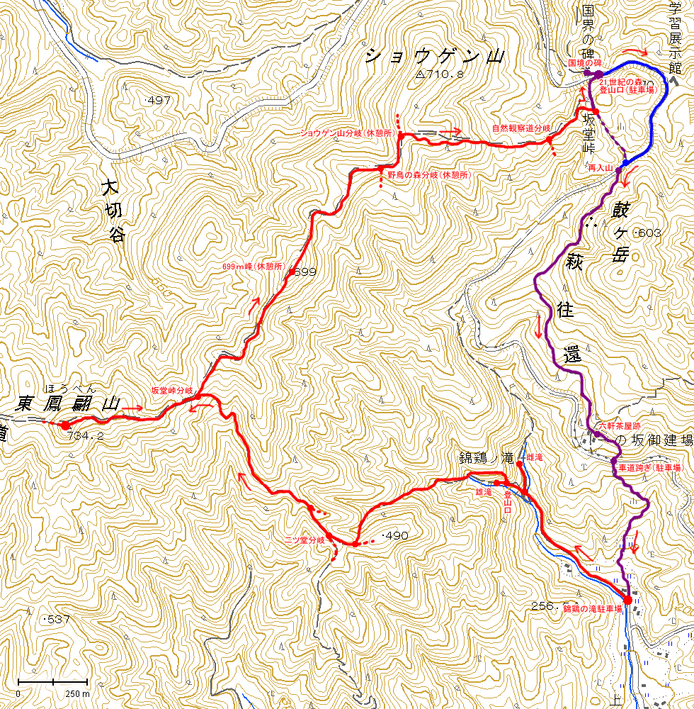左上がショウゲン山、右下が坂堂峠です。