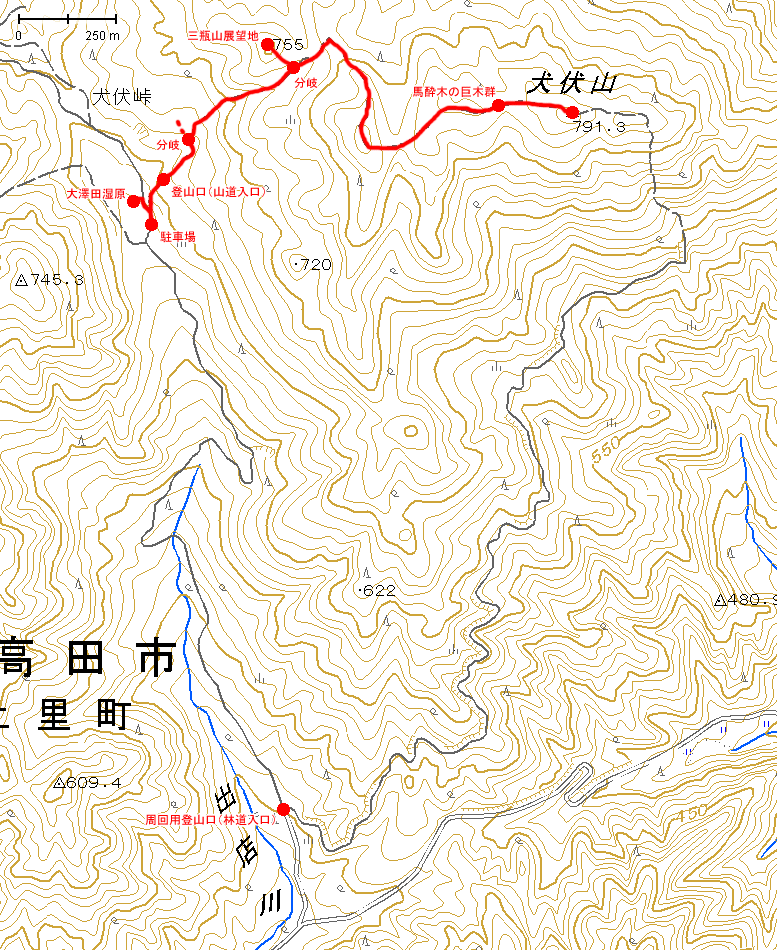 山頂東側の集落から林道を北西に進み、池のある辺りから南下して山頂を目指そうとしました。