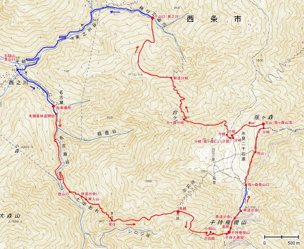 (下山でもこのコースを考えてましたが、その気にならず、東之川へ下る事に...)