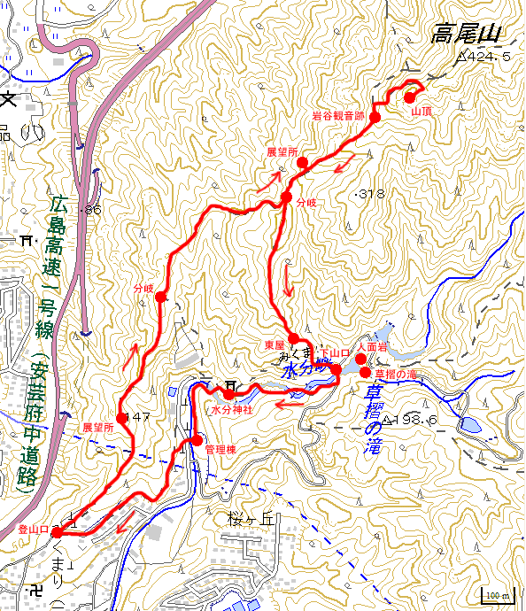 (遠回りですが)草摺の滝目指して左に採り、