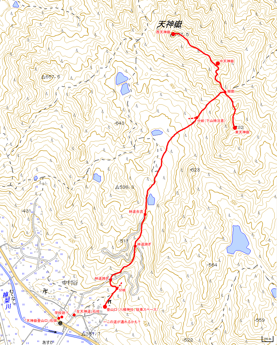 取りに戻ってもすぐなのですが、天神嶽は地形図を見る限りには難所は無いと高をくくり、