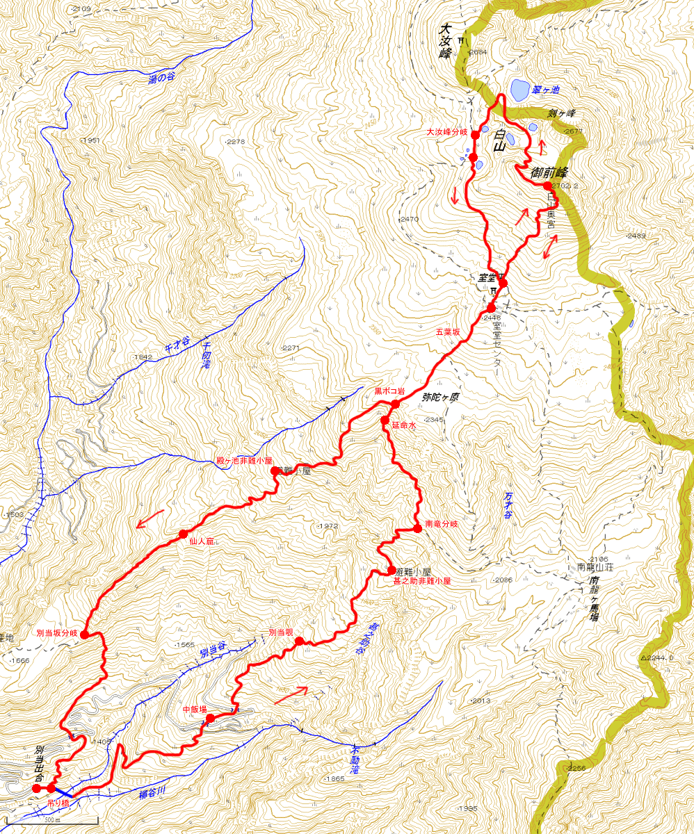別当出合に向けて、一気に下る様です。