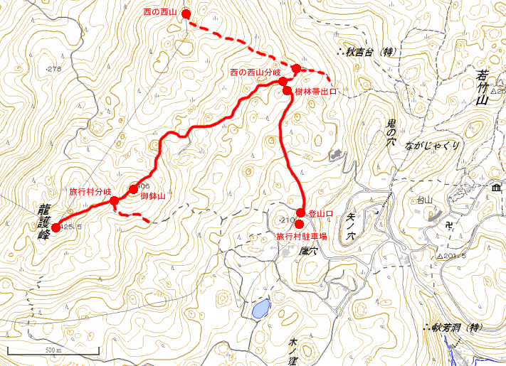 旅行村の中を突っ切って登り、北周りで周回する予定でしたが、