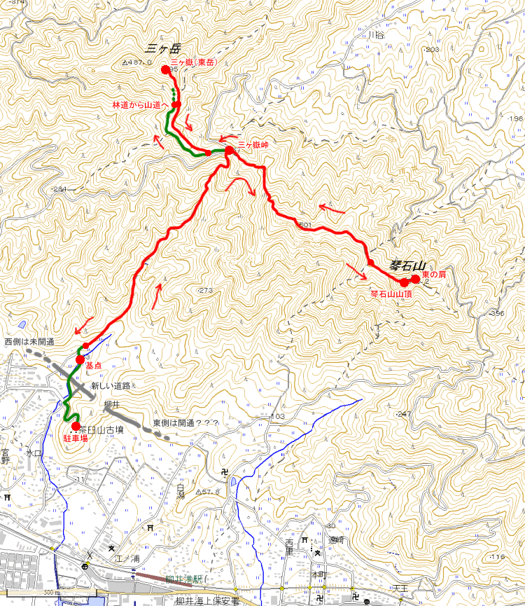 国土地理院の地図には「三ヶ岳 495m」とあるが、