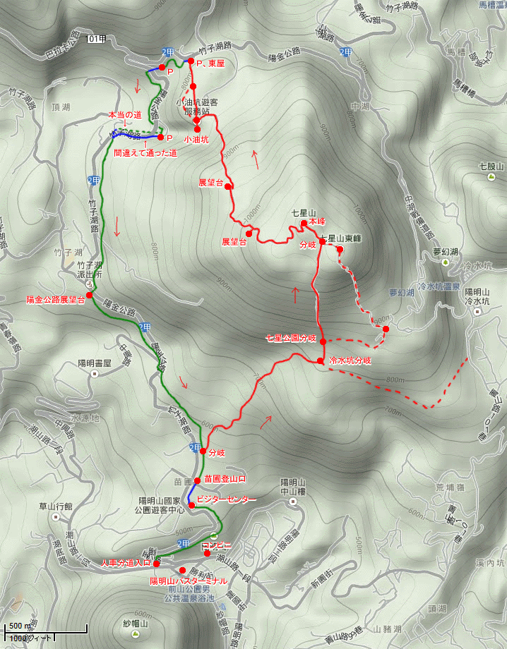 小油坑までは予定通りで、大屯山、面天山の縦走は諦め、陽金公路人車分道を通って、