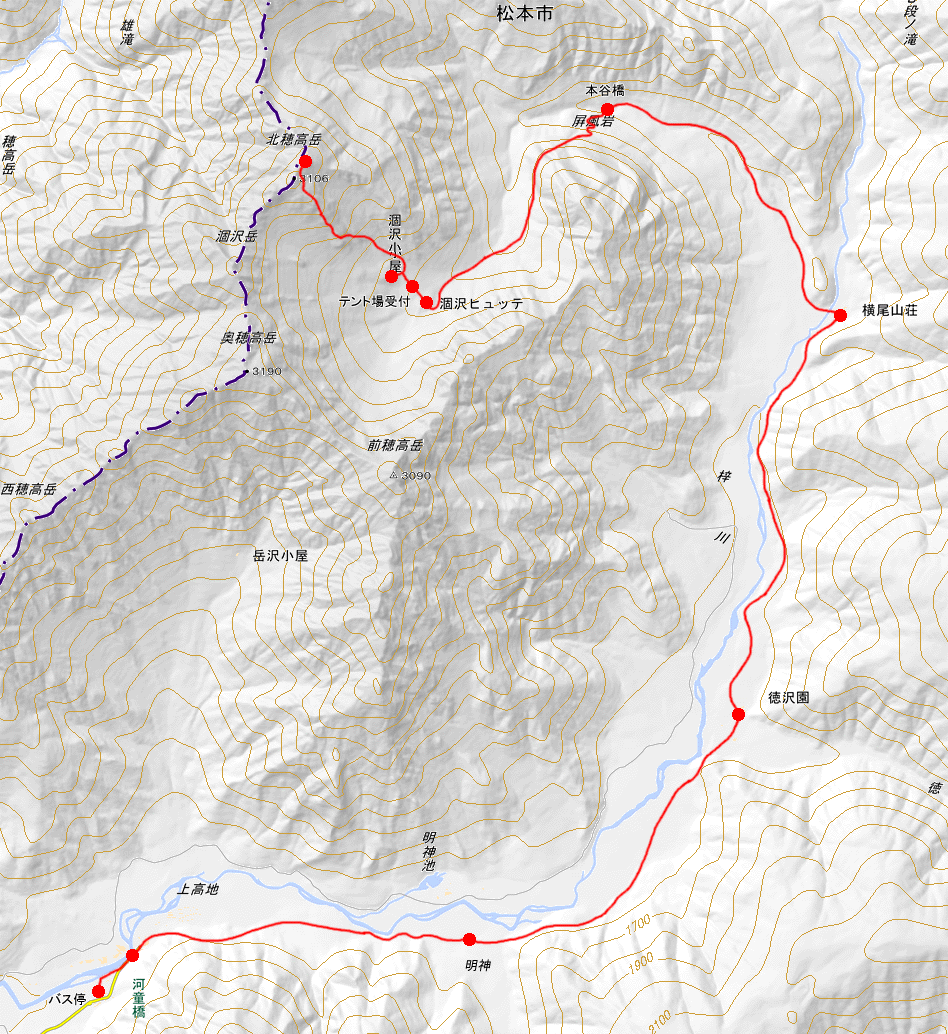 1日目は上高地から涸沢カールへ、2日目は涸沢カールから北穂をピストン、3日目に上高地へ戻って来ます。