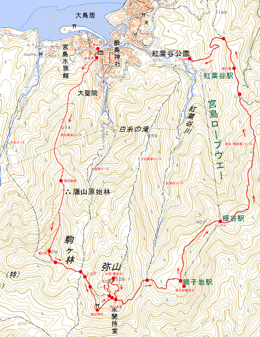 朝日観音コース~駒ヶ林~弥山~榧谷コース
