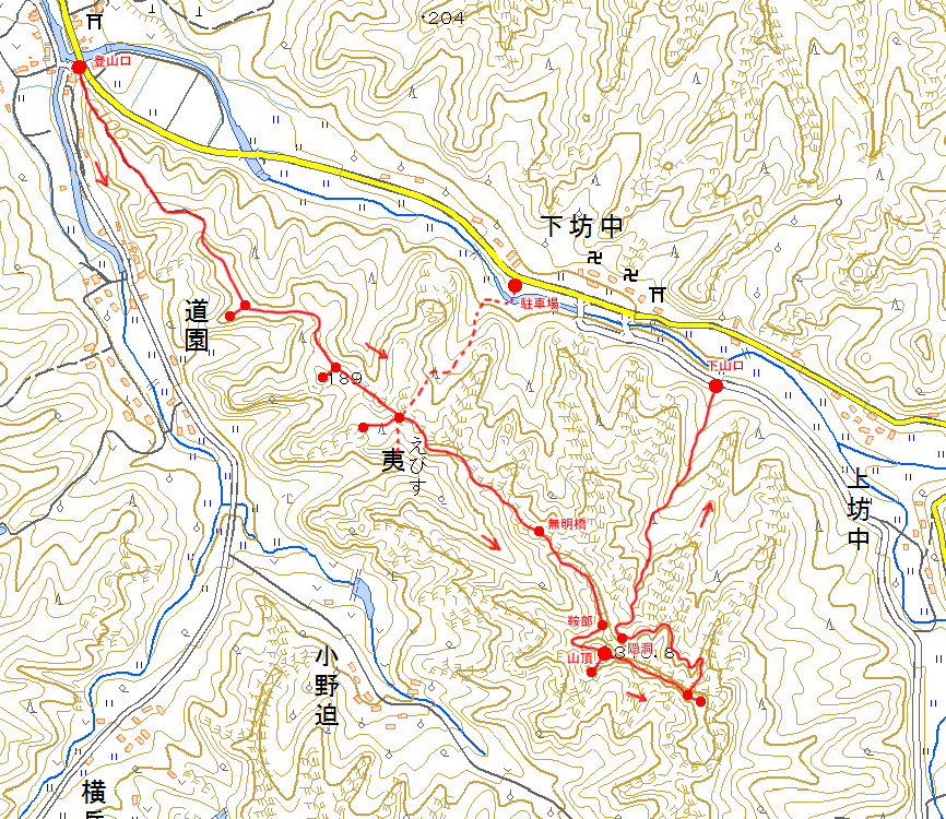 コースに戻ると、分岐が... 左が駐車場へ、右にも登って来る道がある。