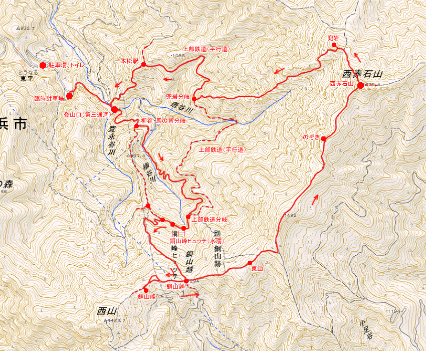 銅山越まで戻って、そのまま進む。