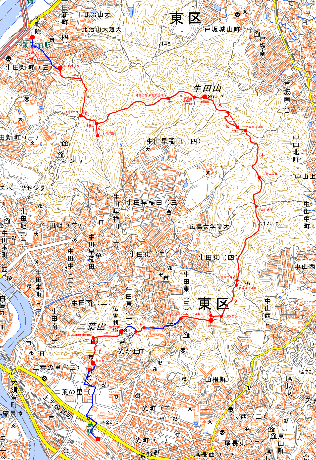 「戸坂南口」分岐。