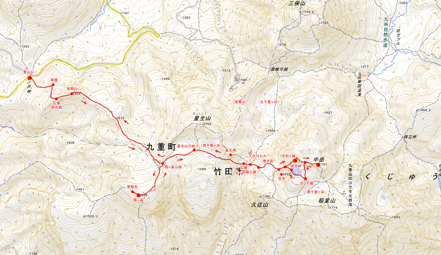 今年は、九州本土最高峰の中岳と思い、天狗ヶ城を混ぜてみた。