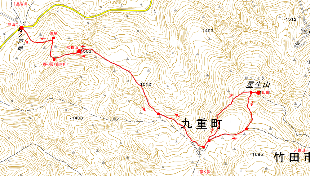 星生山の尾根先の超急登(超急降)道をクリア出来た事だけが救いかな... (^^;)