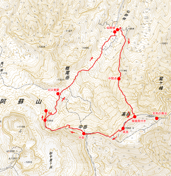 終始超急登の高岳から攻めて、火口を遠望出来て比較的楽な中岳経由で下りる事に...