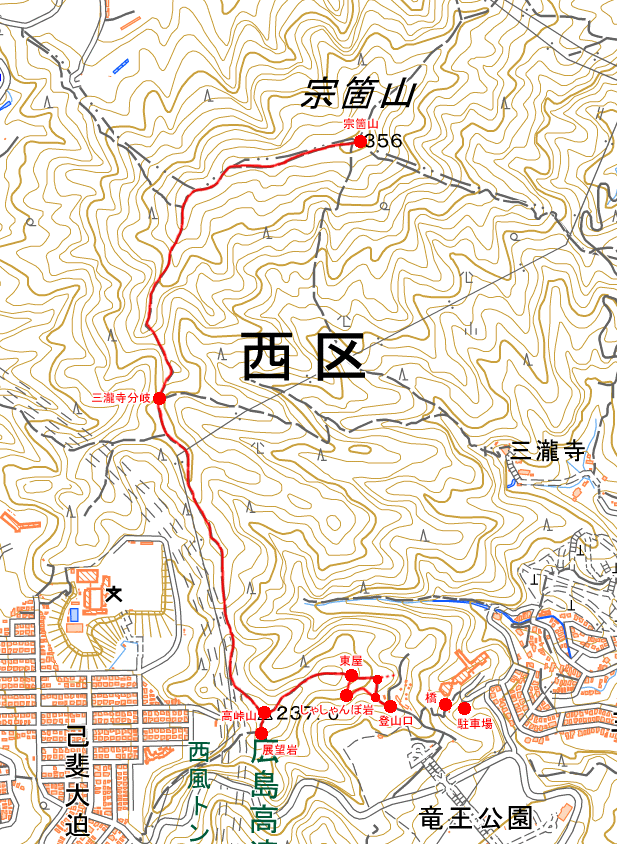で、Aさんの提案で、三滝少年自然の家から高峠山、宗箇山をピストンする事に...