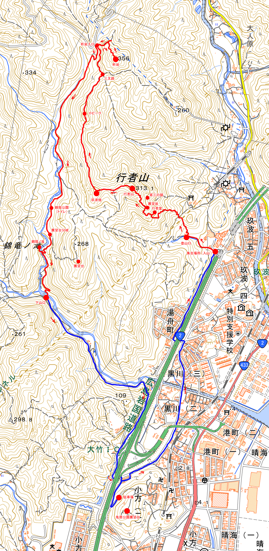 行者山に登るコースは載っていない。