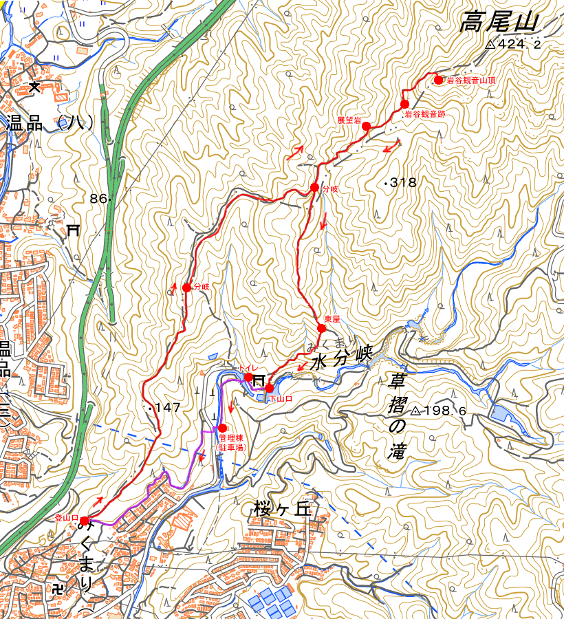 岩谷観音跡に地図や案内写真があったり、各所の岩に名称プレートが設置されてたり、
