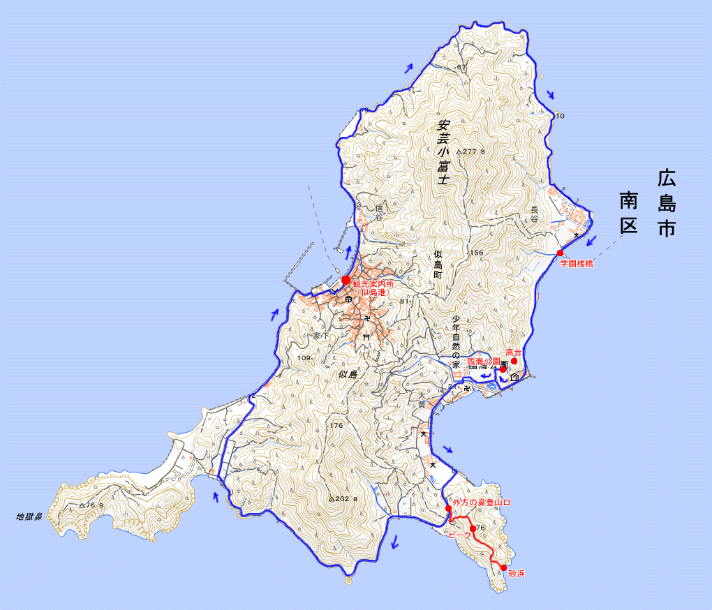 昨年は、学園桟橋~安芸小富士~下高山~臨海公園(滑り台)~学園桟橋としたが、