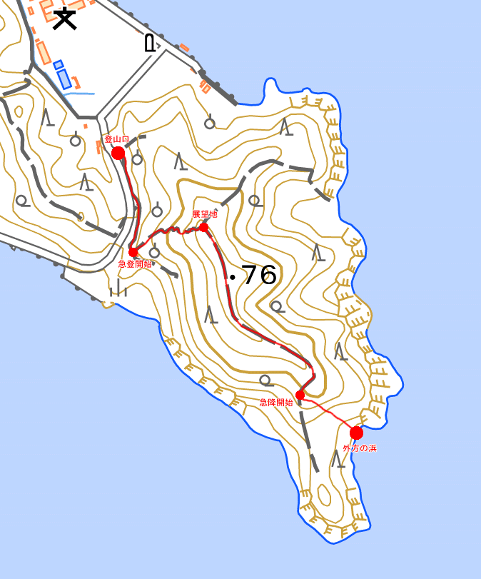 その途中で、外方の鼻のピークを越えて、先端の外方の浜まで行ってきた。