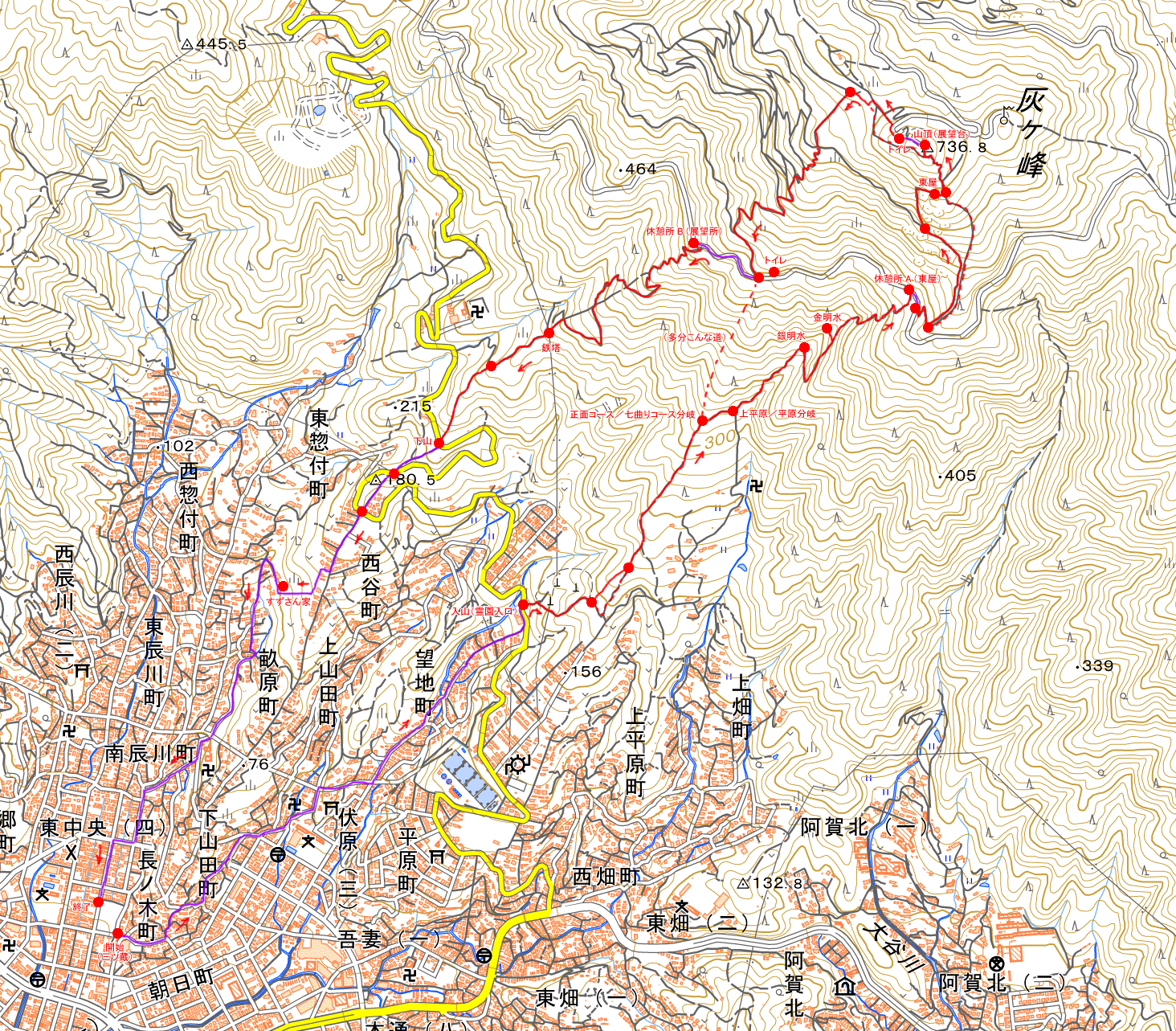 表には「灰ヶ峰 737m」とあるので、