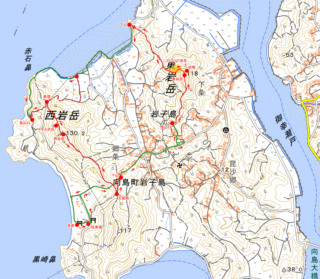 尾道がいいという事だったので、岩子島の東岩岳、西岩岳に行ってきた。