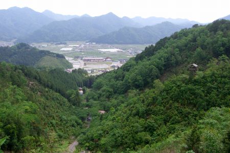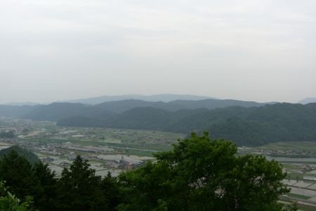 中央の丘の左の高所が桂城跡(比高80m、桂元澄)。