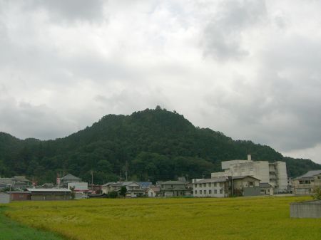 ![]() | 古城山全景。 中央が三の丸、その左の高所が本丸。 |