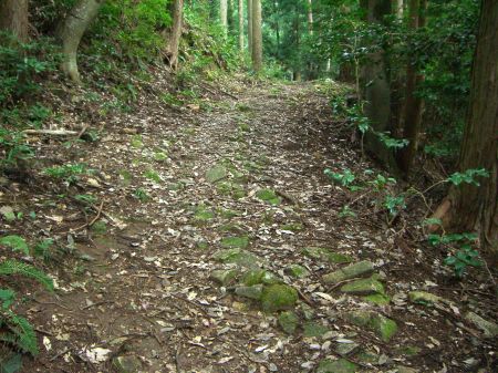 「旧本城」へ登る急坂の石段跡。