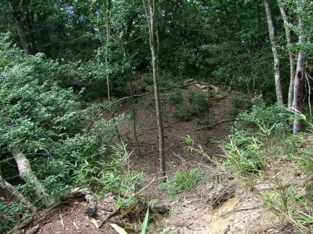 堀切と奥に土塁。