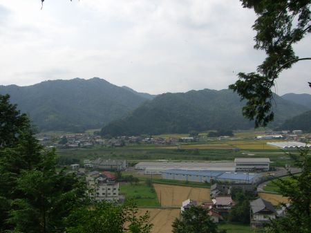 星ヶ城跡から桂城跡を望む。(中央の独立丘陵地)