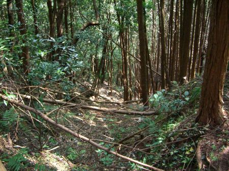 倒木と藪で郭の半分は埋まっています。