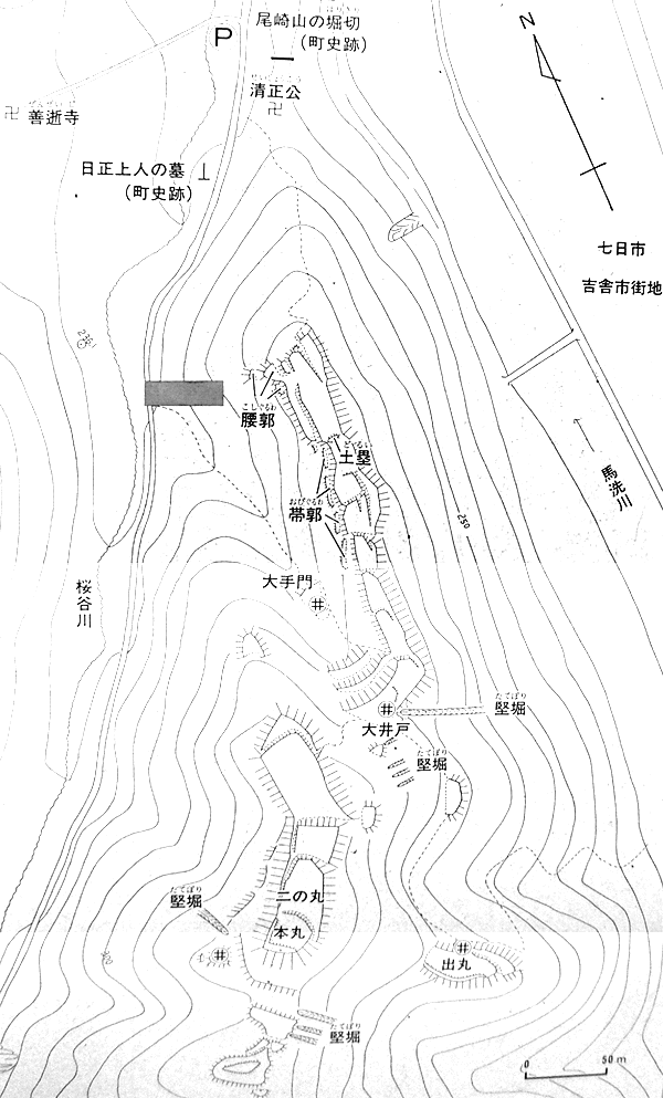 尾崎山の堀切の西に駐車場。尾崎山の北を迂回して来ます。