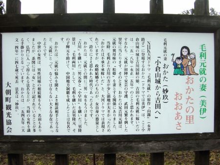 同じく駐車場にある毛利元就の妻女の里の説明。