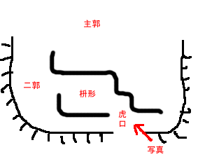 分かり難いが虎口の全景。