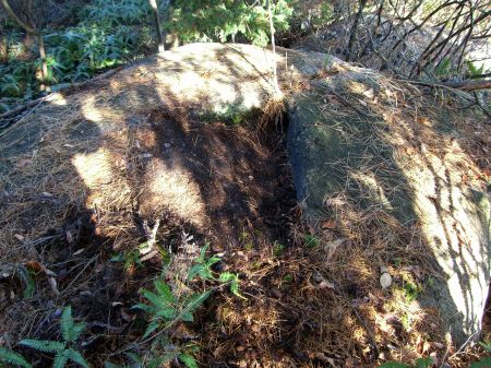 途中、左手に窪みのある岩。