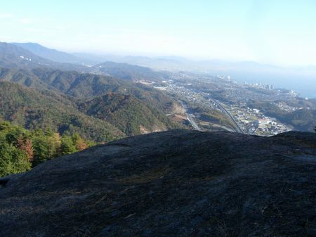 山頂近くの岩場から大野IC方面。