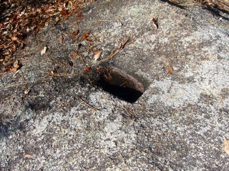 山頂の岩に四角い柱穴。