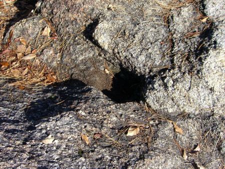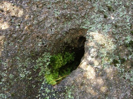 左手岩の側面に縦長丸の穴を発見。