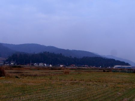 犬飼平古戦場。(祝屋城(岩屋城)跡麓より)