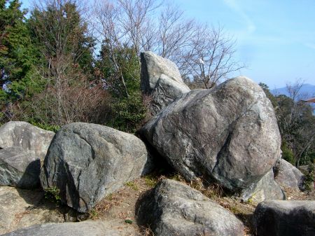 下の郭に降りてみるとこんな岩(中央)が...