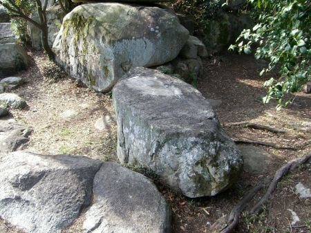 上高間の下側に廻ると人工石の積み上げた跡が...
