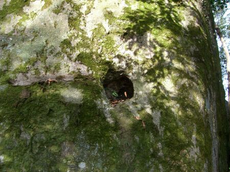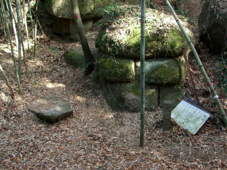 左の大岩の中腹に横穴が...