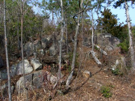 山頂付近の岩場。