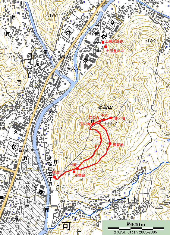 可部高から根の谷川対岸の可部高グランド北隣に登山口があり、