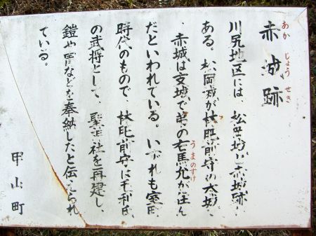 多分甲山ICが出来る辺りの右手に、小高い丘があり、丘陵上に「赤城跡公園」の看板が見える。