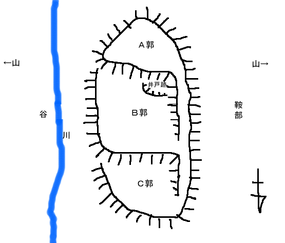 これも想像ですが、東側は川が天然の堀の役目をしているのでは...